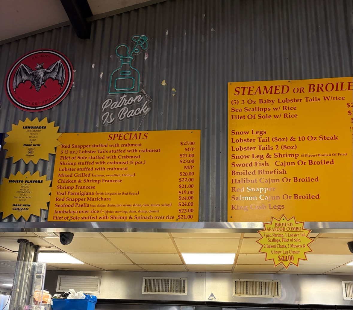 - Combos: The standout BBQ Ribs paired with Fried Shrimp offers a mouthwatering fusion, while the Whole Lobster options provide a touch of luxury.
